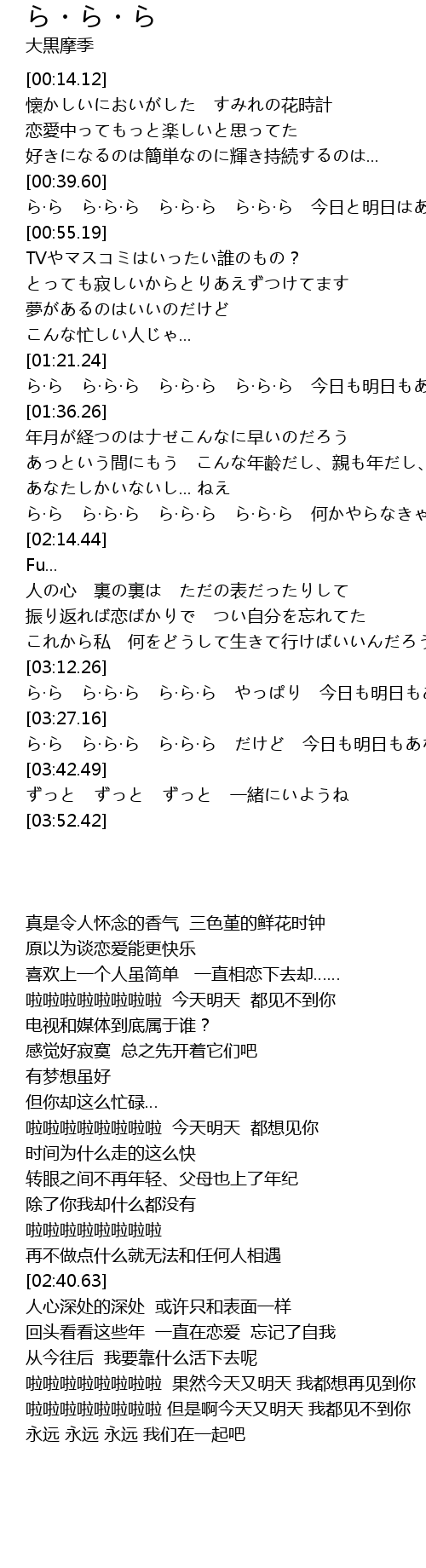 | [03:28.98] | ら·ら ら·ら·ら ら·ら·ら だけど 今日も明日もあなたに逢えない |