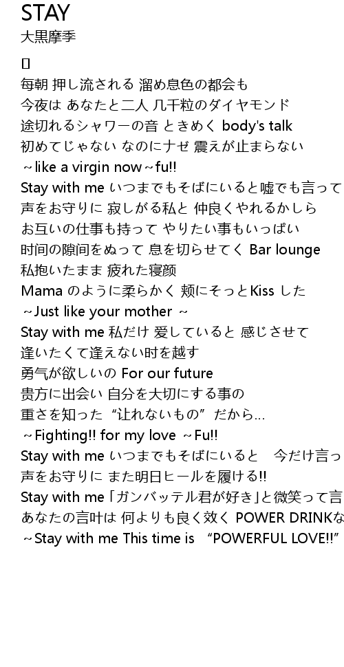 | Stay with me 私だけ 爱していると 感じさせて | |