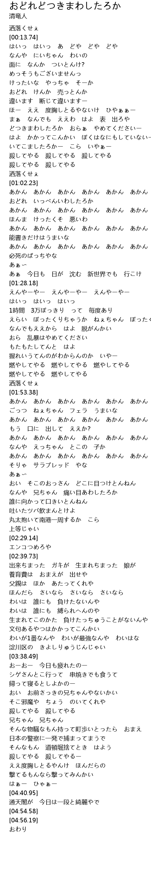 | [01:56.48] | あかん あかん あかん あかん あかん あかん あかん |