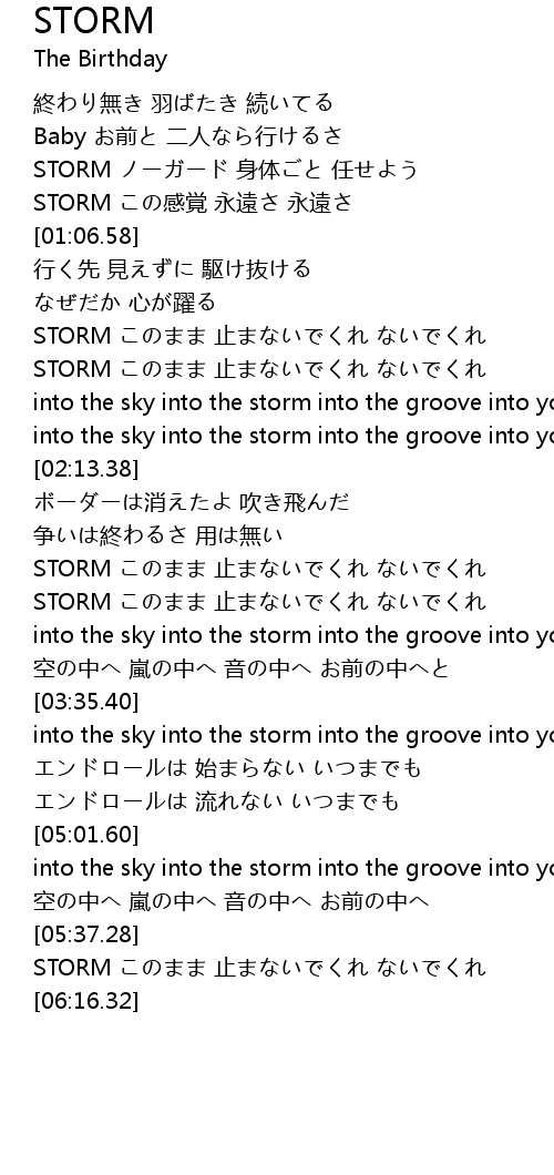 | [06:07.25] | STORM このまま 止まないでくれ ないでくれ |