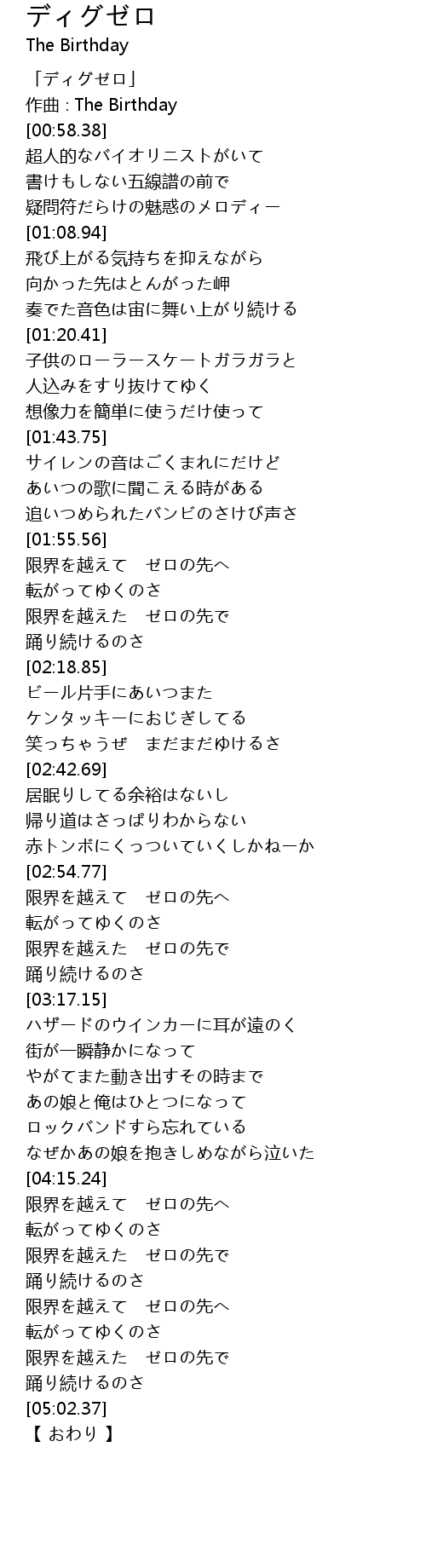 | [01:58.57] | 限界を越えて ゼロの先へ |