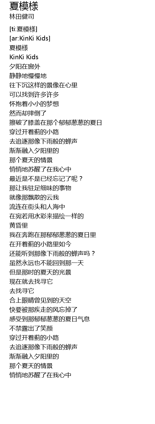 | [02:32.05] | 我在奔跑在那郁郁葱葱的夏日里 |