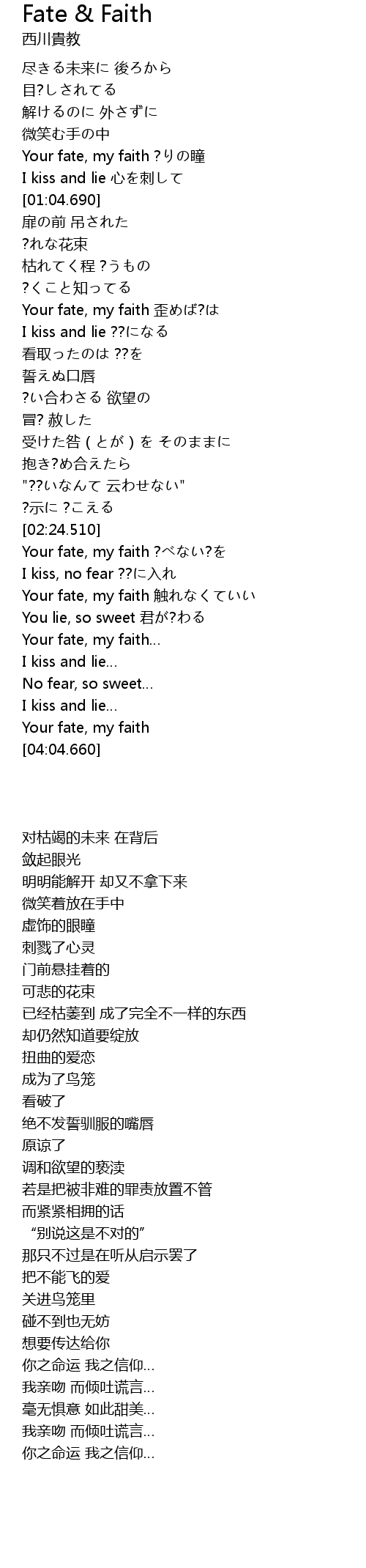 | [01:36.550] | Your fate, my faith 歪めば?は |