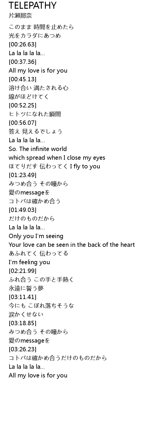 | [03:26.79] | コトバは確かめ合うだけのものだから |