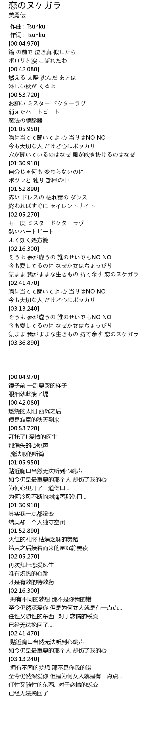 | [03:01.870] | 胸に当てて聞いてよ 心 当りはNO NO |