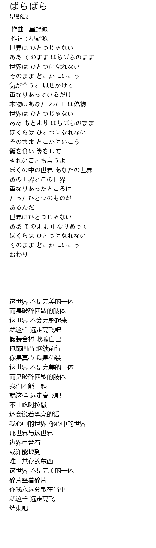 作词 : 星野源 |