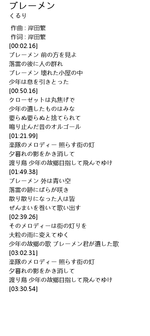 | [00:26.96] | ブレーメン 前の方を見よ |