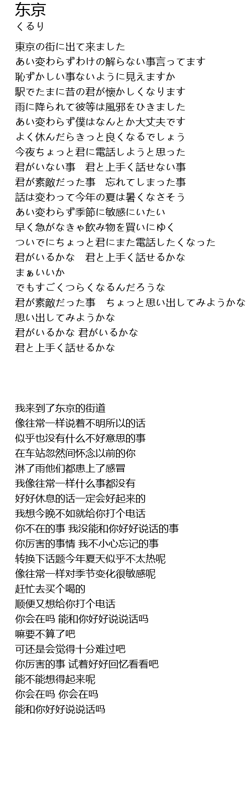 | 歌曲 | 东京 |