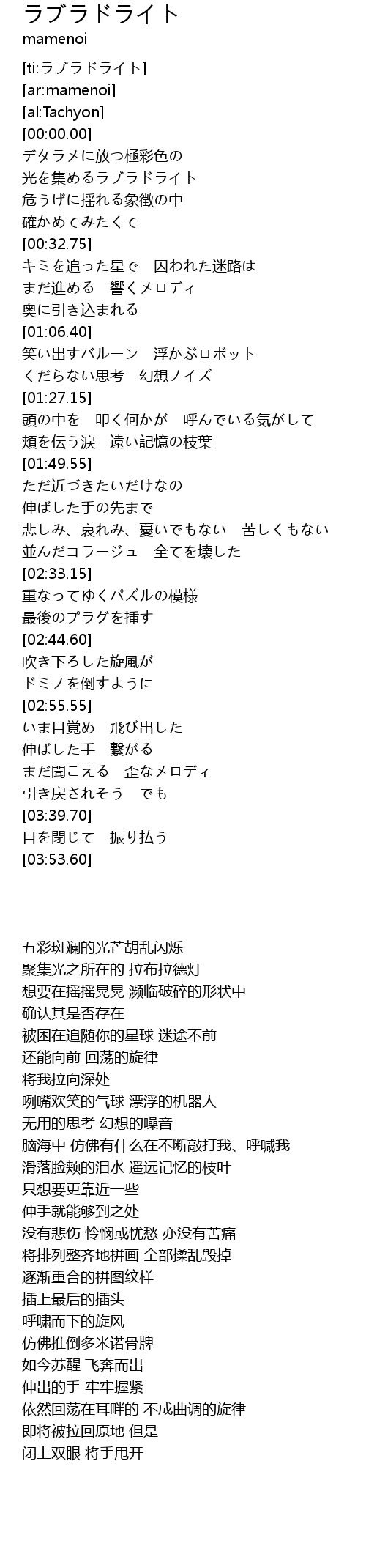 | [00:16.80] | 聚集光之所在的 拉布拉德灯 |