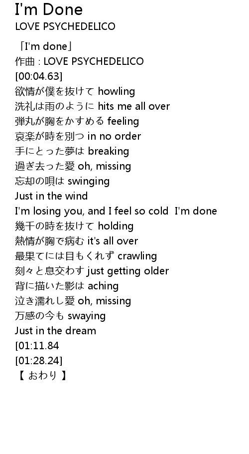 | [00:00.00] | 「I'm done」 |