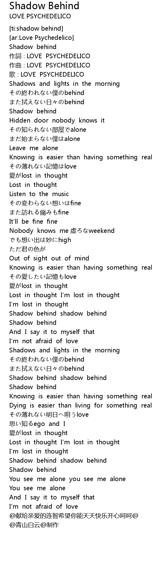 | [00:02.820] | zuò cí LOVE PSYCHEDELICO |