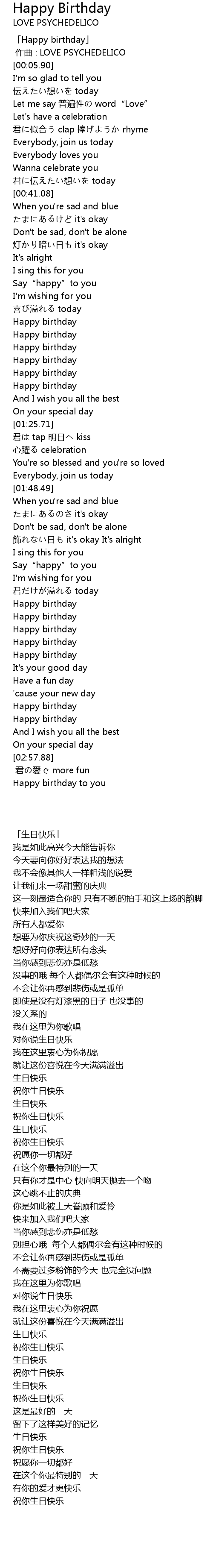 | [00:03.90] | zuo qu LOVE PSYCHEDELICO |