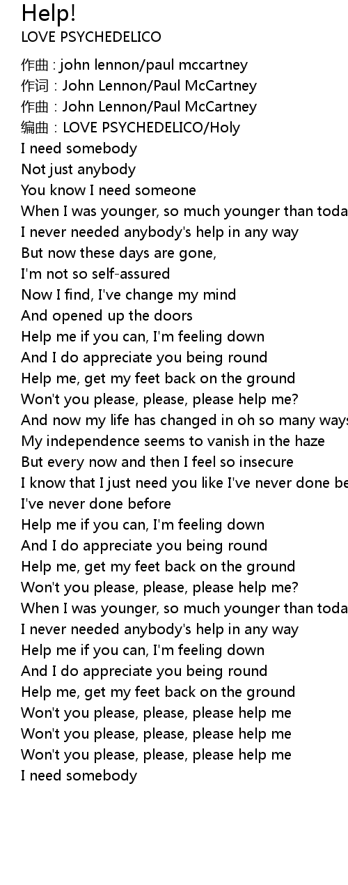 | Help me if you can, I' m feeling down | |