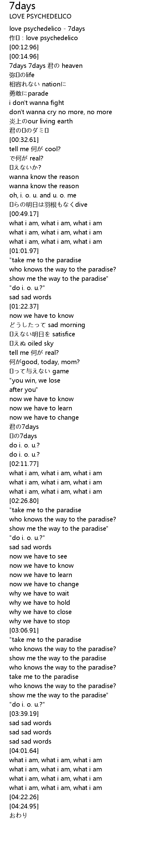 | [00:00.00] | love psychedelico - 7days |