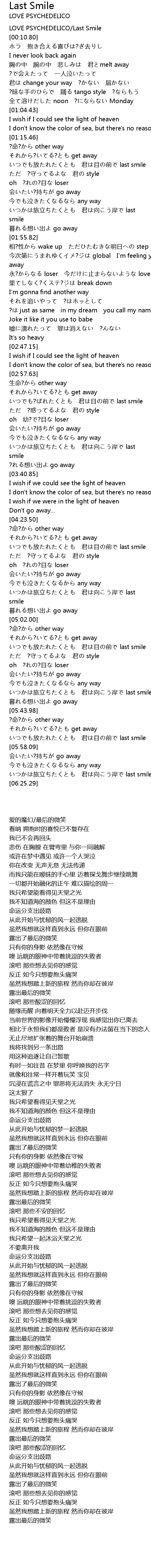| [05:07.31] | いつでも放たれたくとも 君は目の前で last smile |
