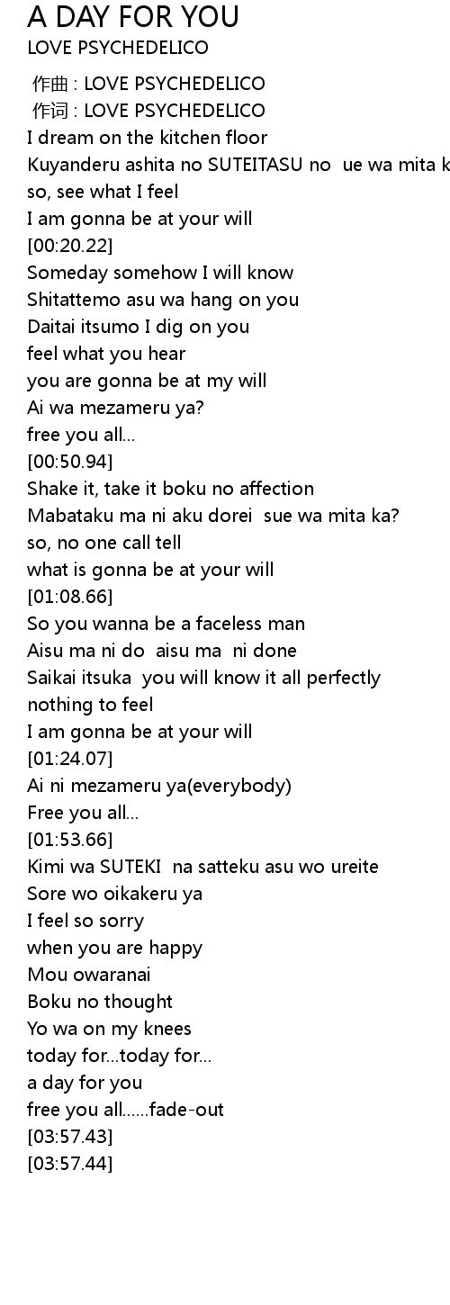 | [00:01.00] | 作词 : LOVE PSYCHEDELICO |