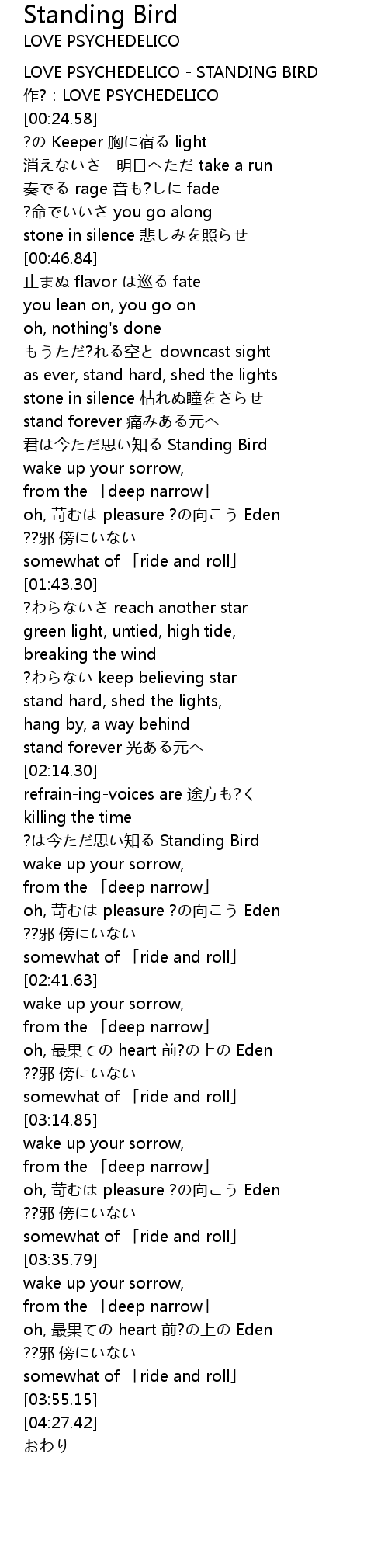 | [00:00.00] | LOVE PSYCHEDELICO STANDING BIRD |
