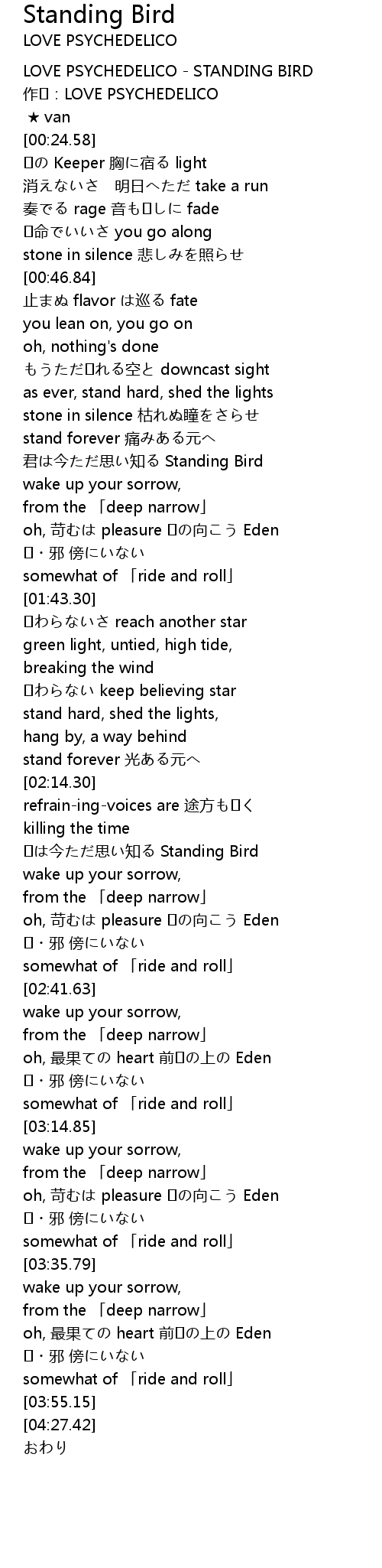 | [00:00.00] | LOVE PSYCHEDELICO STANDING BIRD |