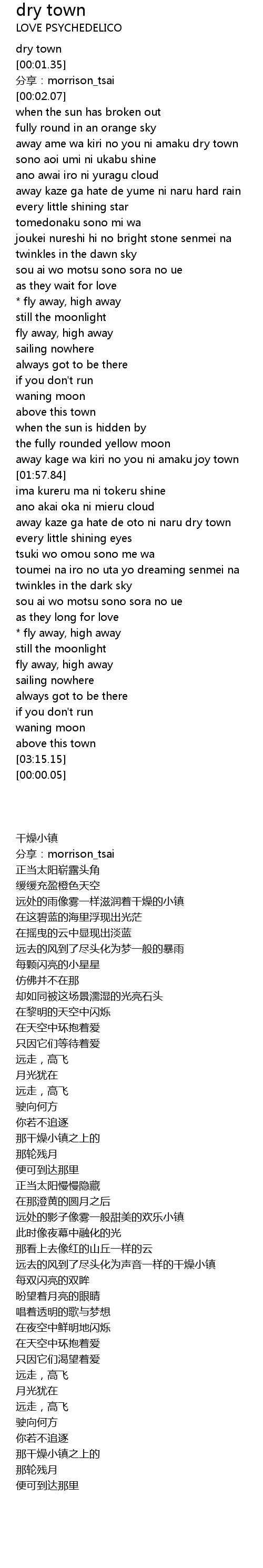 | [00:11.95] | away ame wa kiri no you ni amaku dry town |