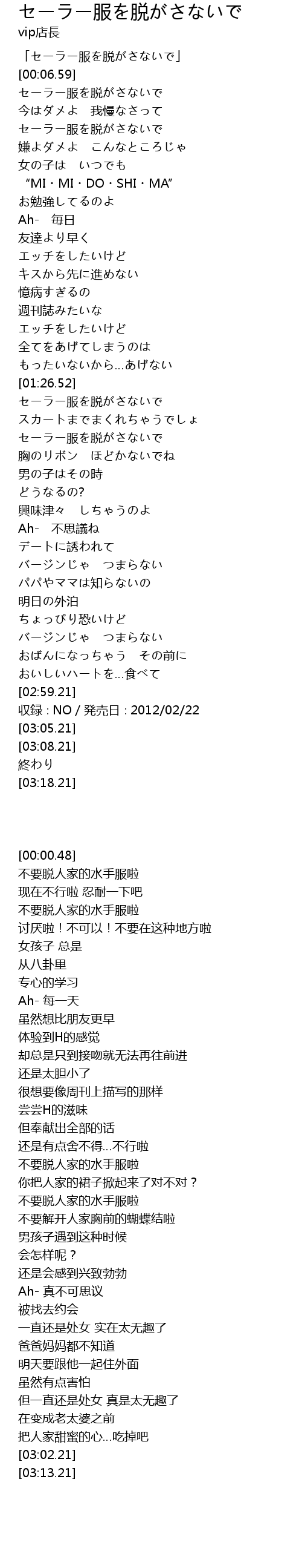 | [01:54.60] | 不要脱人家的水手服啦 |
