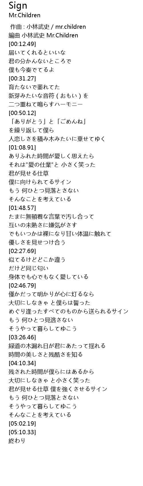| [00:00.00] | 作曲 : 小林武史/mr.children |