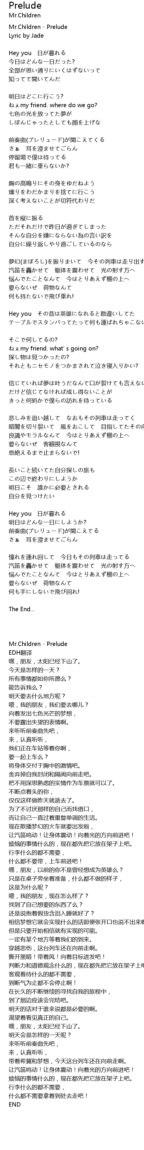 | [00:00.00] | Mr.Children - Prelude |