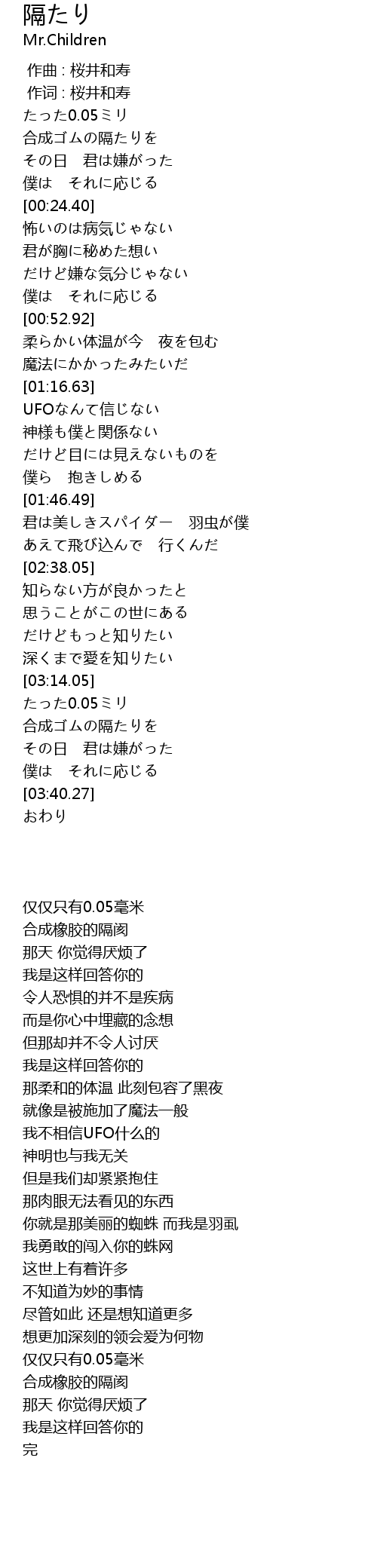 | [00:00.00] | 作曲 : 桜井和寿 |