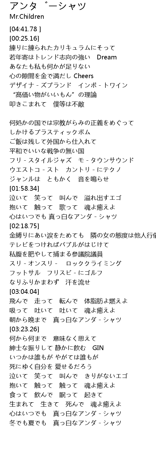 | [05:05.97] | 心はいつでも 真っ白なアンダ-シャツ |
