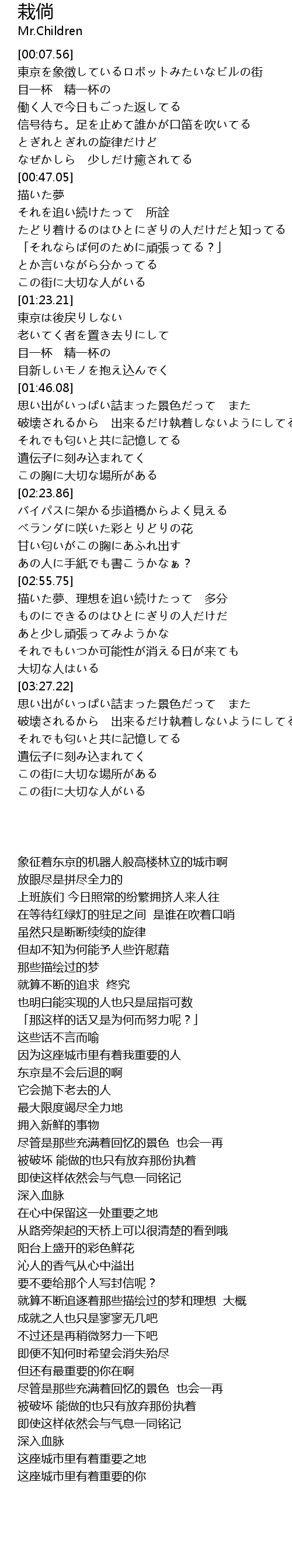 | [00:12.56] | 東京を象徴しているロボットみたいなビルの街 |