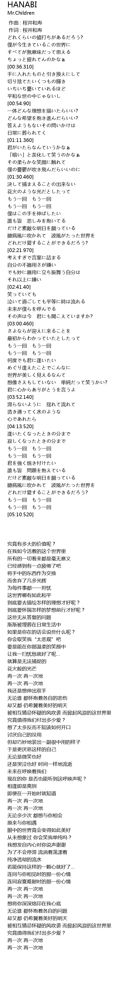 | [01:42.289] | 花火般的光芒 |