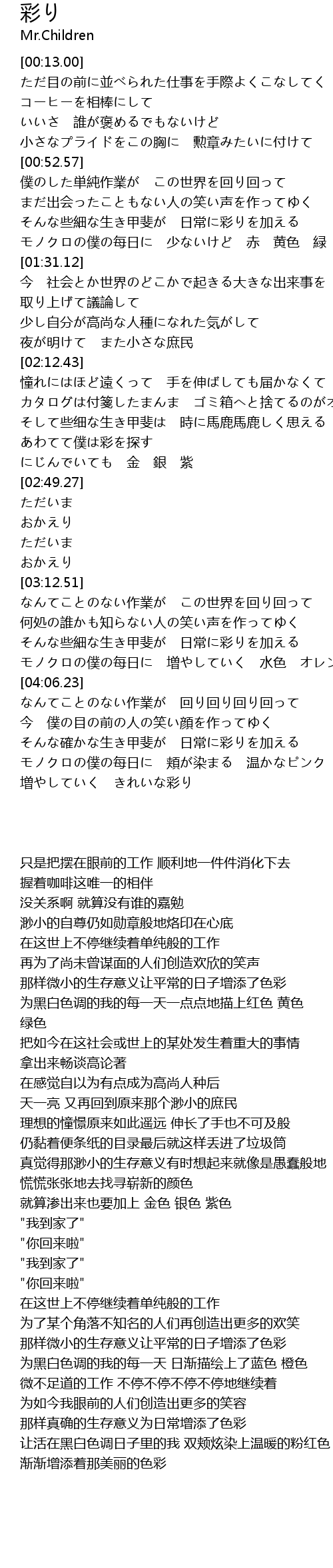 | [02:40.06] | あわてて僕は彩を探す |