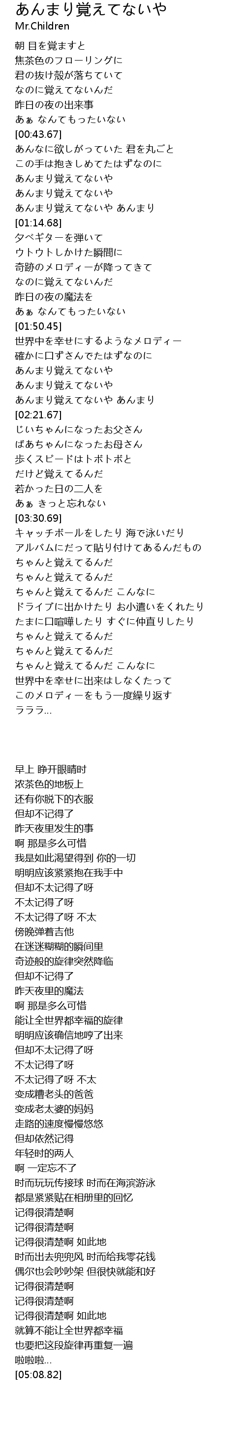 | [01:09.45] | あんまり覚えてないや あんまり |
