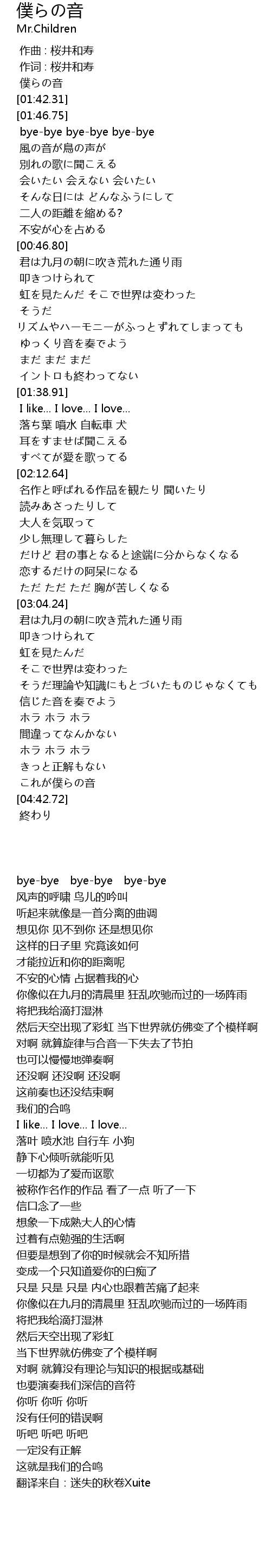 | [01:40.60] | 僕らの音 |