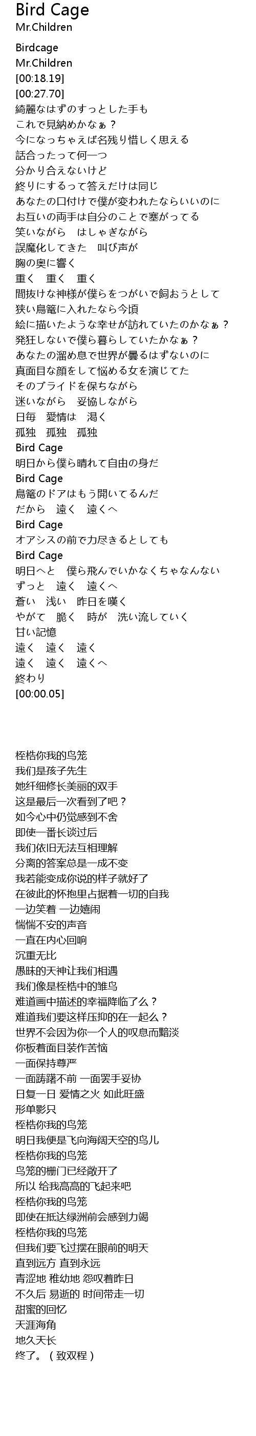 | [00:02.31] | Birdcage |