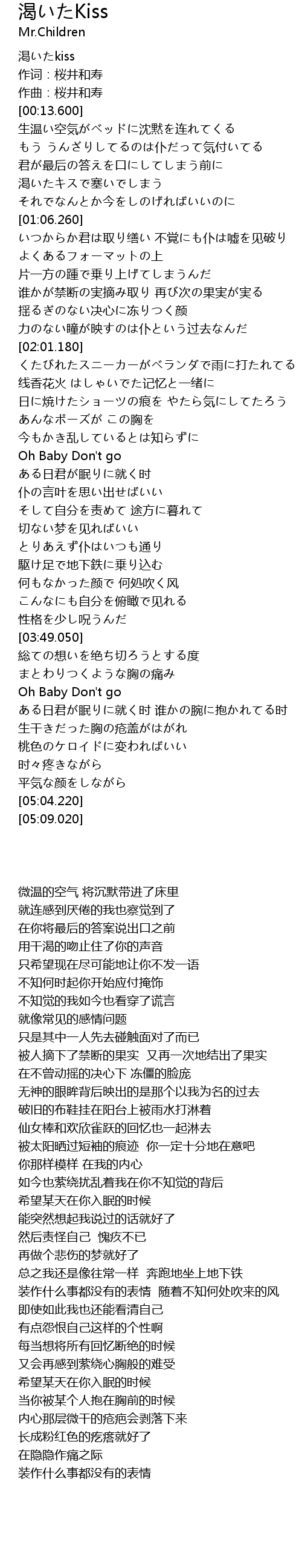 | [00:52.850] | 渇いたキスで塞いでしまう |