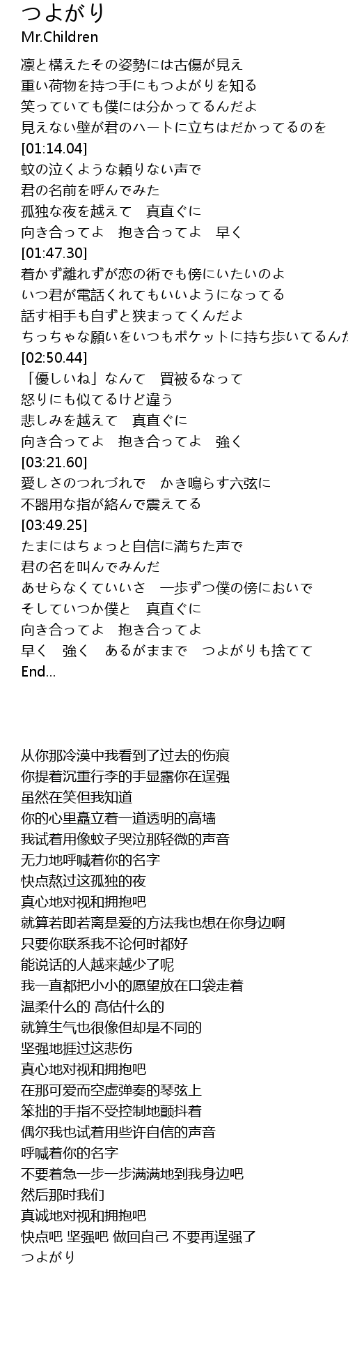 | [04:46.41] | つよがり |
