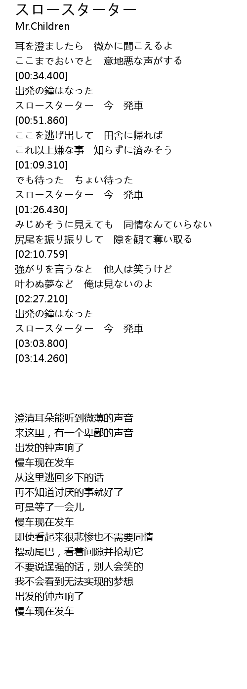 | [02:35.810] | スロースターター 今 発車 |