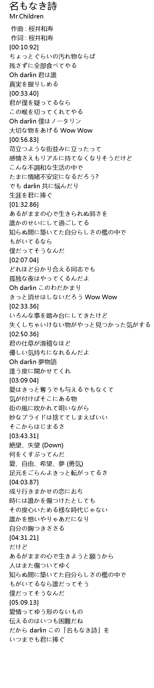 | [05:18.40] | だから darlin この「名もなき詩」を |