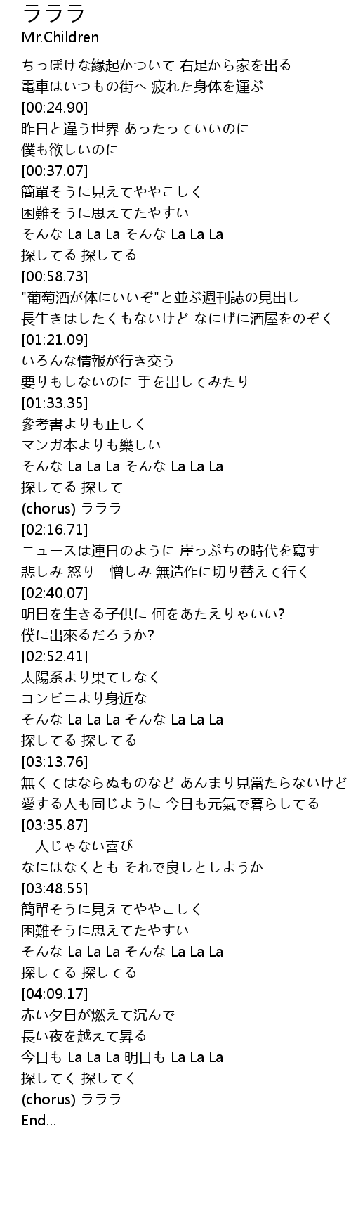 | [04:31.82] | (chorus) ラララ |