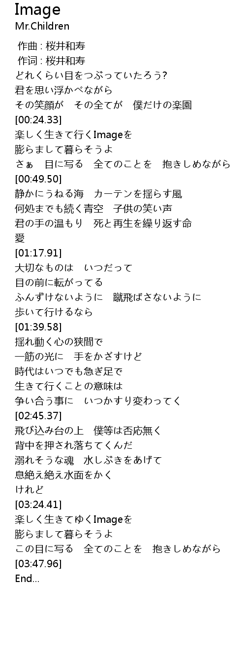 | [03:25.48] | 楽しく生きてゆくImageを |