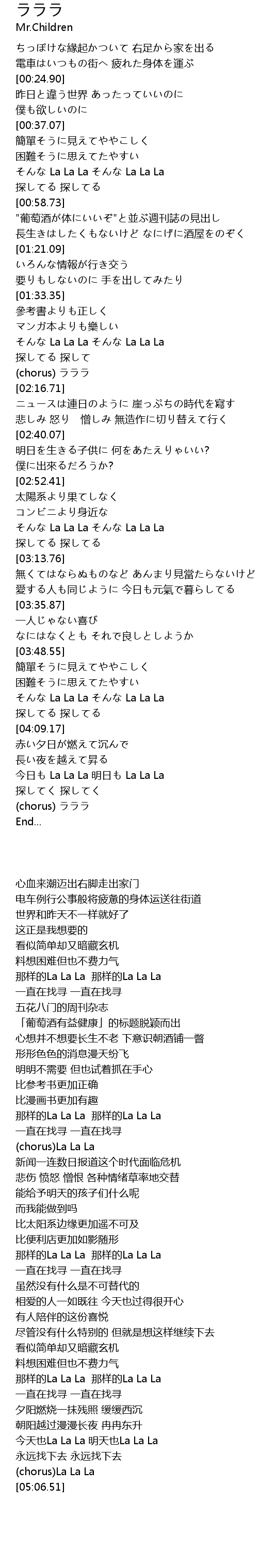 | [04:31.82] | (chorus) ラララ |
