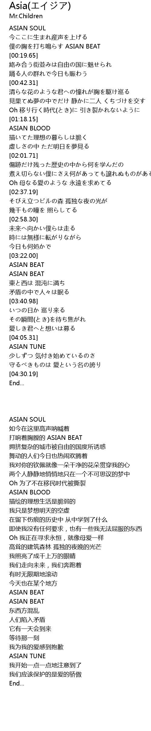 | [00:12.32] | 打响着胸膛的 ASIAN BEAT |