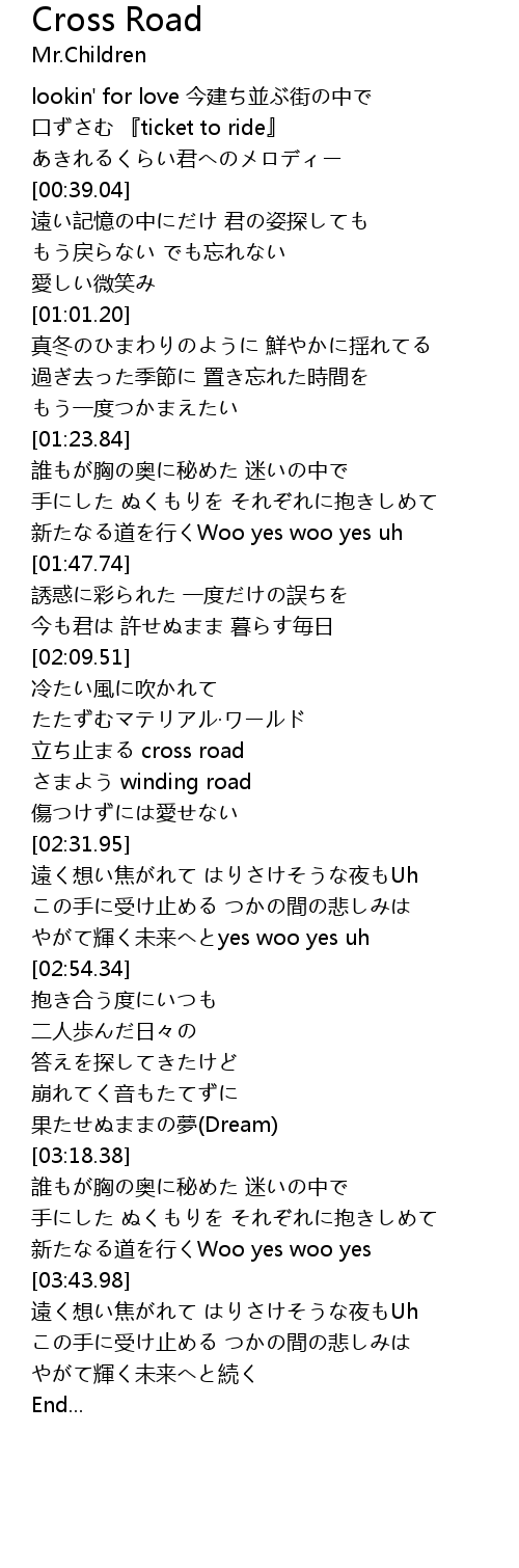 | [03:39.05] | 新たなる道を行くWoo yes woo yes |
