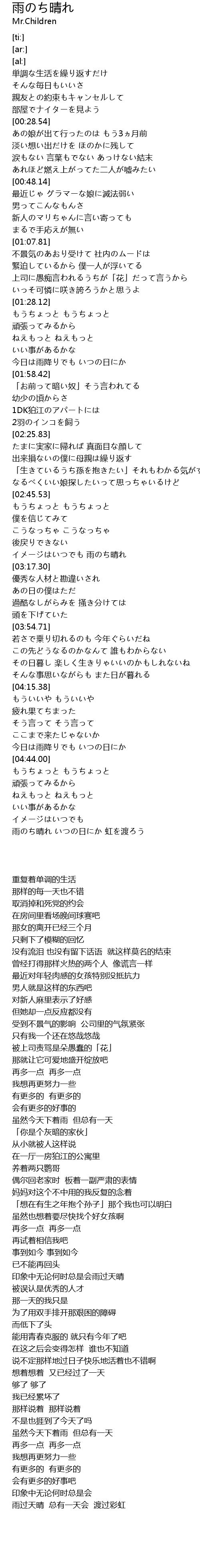 | [03:06.60] | イメージはいつでも 雨のち晴れ |