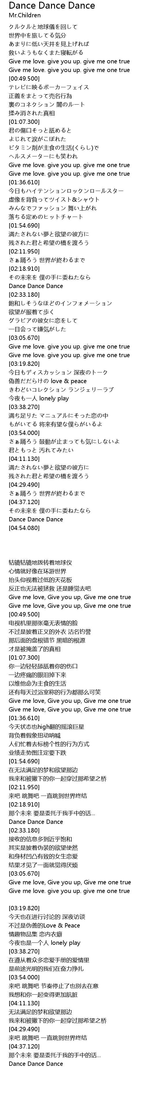 | [00:35.330] | Give me love. give you up. give me one true |