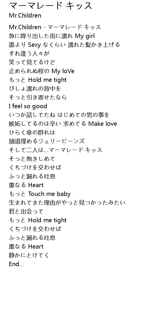 | [00:00.00] | Mr.Children - マーマレード·キッス |