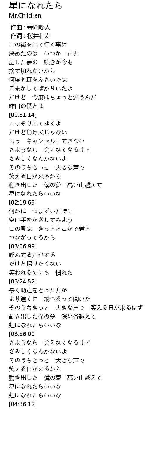 | [02:13.85] | 星になれたらいいな |