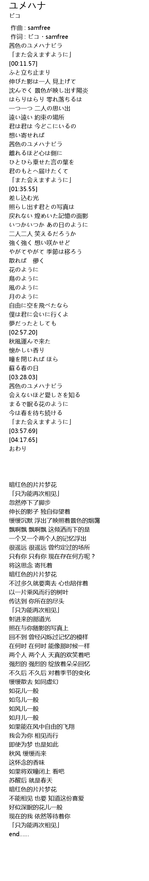 | [00:00.20] | 作词 : ピコ・samfree |