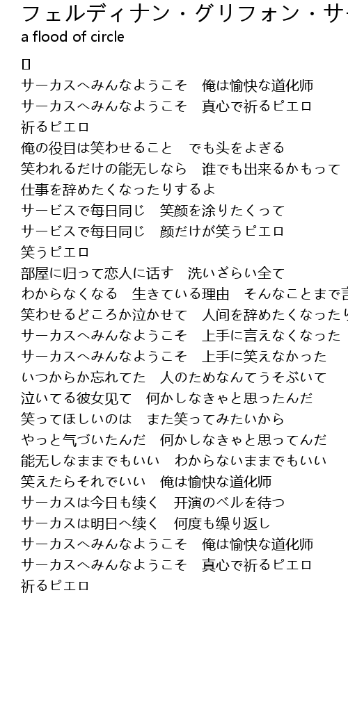 | 歌曲 | フェルディナン・グリフォン・サーカス |