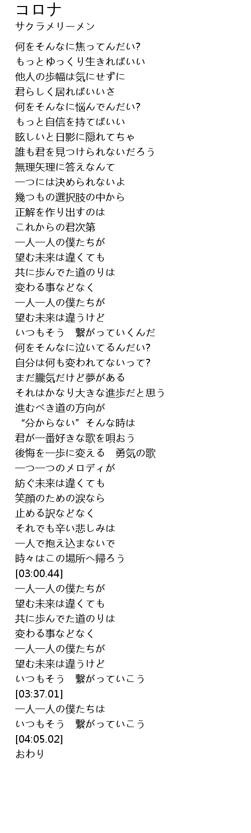 | [02:12.11] | 後悔を一歩に変える 勇気の歌 |